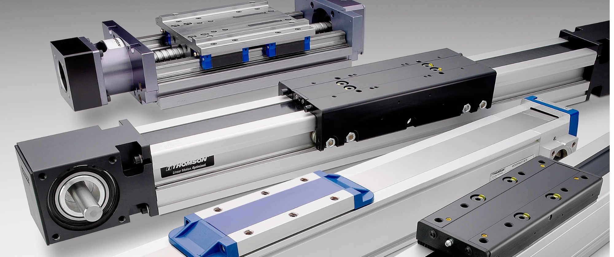 Thomson直線模組 Thomson直線模組擁有超過(guò)100年的直線運(yùn)動(dòng)產(chǎn)品生產(chǎn)經(jīng)驗(yàn)。 Thomson直線模組目前挑選了各品牌中競(jìng)爭(zhēng)力的產(chǎn)品,組成了代表當(dāng)今高水平的產(chǎn)品系列。產(chǎn)品系列涵蓋自小,緊湊直至大,可靠的直線運(yùn)動(dòng)單元。 Thomson擁有豐富的滾珠絲杠驅(qū)動(dòng)和皮帶驅(qū)動(dòng)單元,采用了滾珠導(dǎo)軌、滑軌、導(dǎo)輪等各種導(dǎo)向技術(shù),設(shè)計(jì)用于惡劣的工作環(huán)境,可滿足您的高速或高精度系統(tǒng)對(duì)直線運(yùn)動(dòng)的需求。